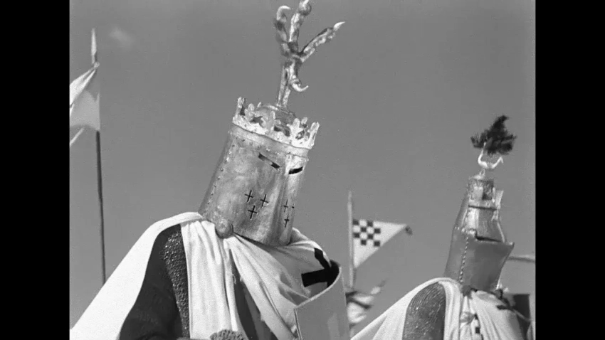 И невдомек было подавляющему большинству наших граждан, что не только тевтонским «Божьим рыцарям», но и вообще рыцарям военно-монашеских Орденов по Уставу запрещалось носить на шлемах любые украшения – ни рогов, ни крыльев, ни человеческих рук, ни орлиных когтей быть на них не должно было. Но так ведь рогов Сергею Эйзенштейну показалось мало! И на шлем предводителю рыцарей – ливонскому магистру (хотя настоящий магистр в той войне не участвовал!) он водрузил весьма замысловатое украшение – помимо рогов, еще и королевскую корону (!), увенчанную крестом, что никоим образом не подходило к его монашескому (а отнюдь не королевскому!) сану! Так что в итоге получилось весьма эпическое, но очень далекое от исторических реалий зрелище.