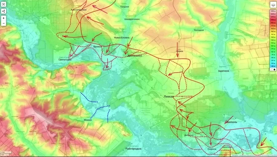 На Лиманском направлении российские штурмовые группы развивают наступление сразу с двух сторон. В районе Дибровы подразделения продвинулись примерно на полтора километра, заняв западную часть жилой застройки. Одновременно усиливается огневой контроль над подступами к Красному Лиману. Большинство асфальтированных въездов находятся под физическим или огневым воздействием, что осложняет снабжение украинской группировки.