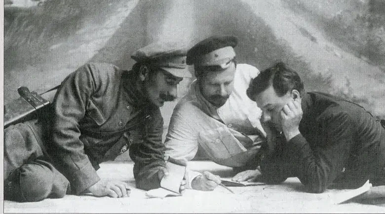 Командующий Первой Конной армией Будённый, командующий Южным фронтом Фрунзе член РВС Первой Конной_Ворошилов, 1920 г.