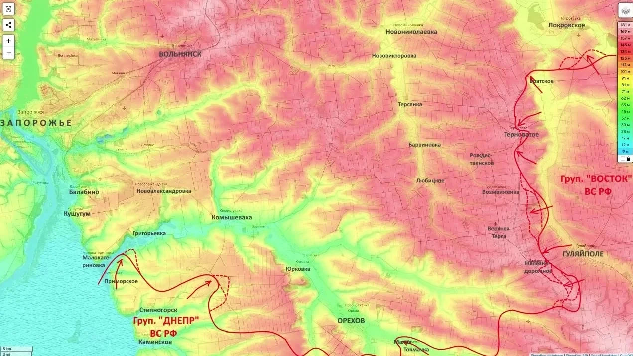 Полное освобождение Терноватого откроет путь на Рождественское (укр. Рездвянка), что позволит нашим войскам выйти в тыл Ореховской группировке уже с северо-востока. Одновременно активизировались действия в направлении Покровского (Днепропетровская область), где наши силы занимают лесополосы, обеспечивая фланг наступающей группировки от возможных контрударов.