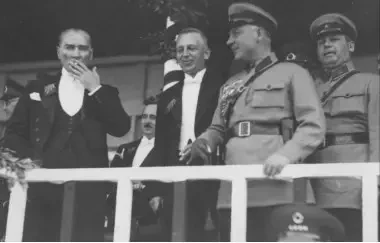 Президент Турецкой Республики Мустафа Кемаль Ататюрк и глава советской делегации, председатель Реввоенсовета СССР К. Е. Ворошилов на военном параде по случаю 10-летия со дня основания Республики, 29 октября 1933 г.