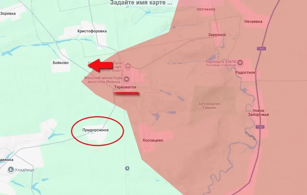 После недавнего освобождения Терноватого в Запорожской области штурмовые подразделения «восточной» группировки армии России продолжили продвижение на этом участке фронта, вклинившись в глубину обороны противника и освободив относительно небольшой населенный пункт Придорожное.