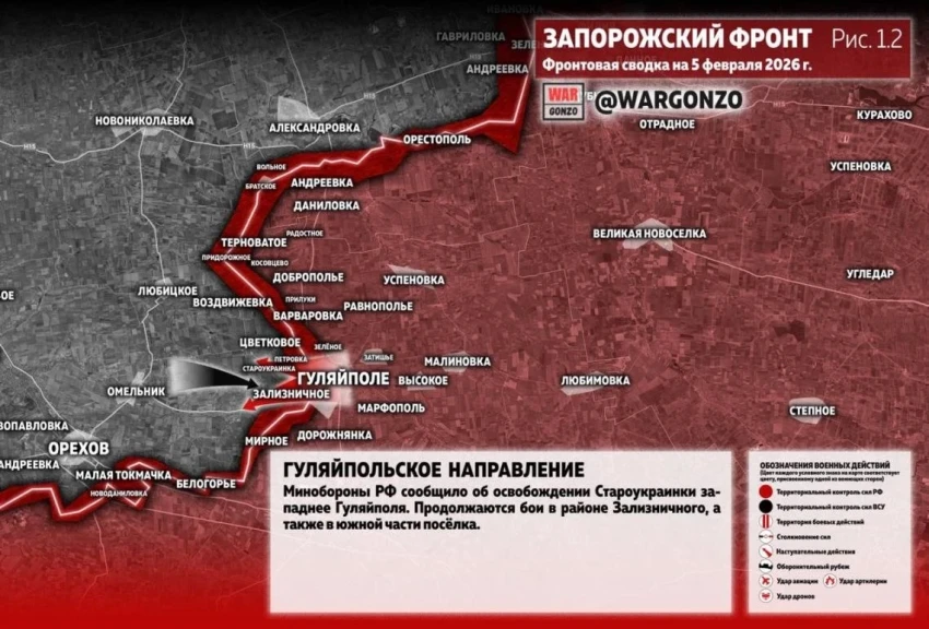 На Запорожском фронте важным событием стало освобождение населённого пункта Староукраинка, расположенного западнее Гуляйполя. Как сообщает военный обозреватель Юрий Подоляка, этот тактический успех имеет стратегические последствия для всей линии обороны противника на данном участке.