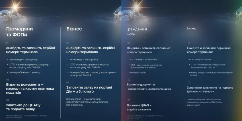 Порядок регистрации терминалов Starlink на Украине