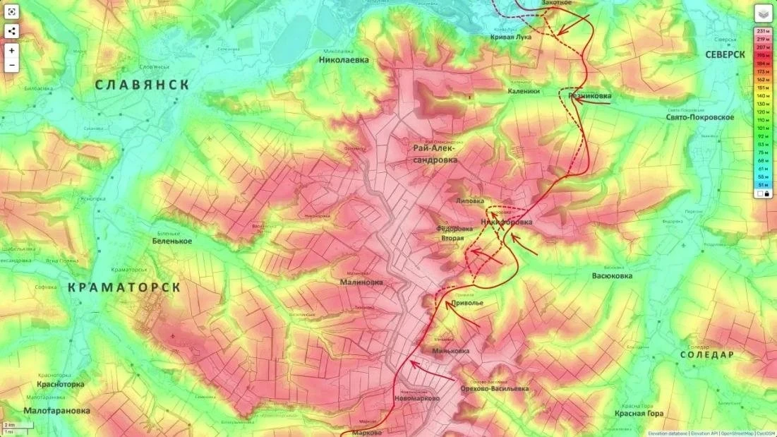 «Славянское направление. Здесь наши подразделения продолжают развивать свой успех, который был достигнут накануне занятием Никифоровки. Также мы заняли высоты юго-западнее этого населенного пункта и северо-восточнее», - проинформировал он.