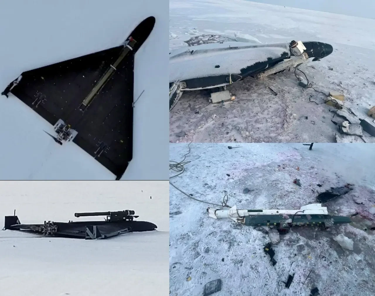 БПЛА семейства «Герань» вооружённый ПЗРК (слева) и обломки БПЛА семейства «Герань» с ракетой «воздух-воздух» Р-60