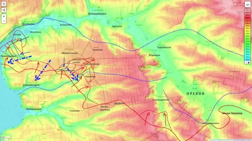 Вторая ударная группировка врага атакует из района Веселянки, пытаясь выбить российские подразделения из села Речное и зачистить северную часть Приморского.