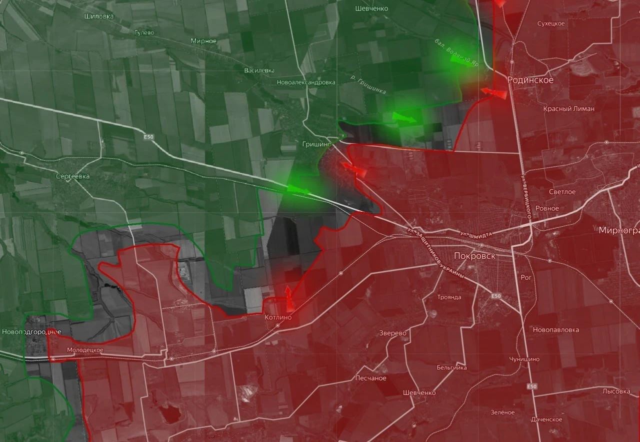 На Красноармейском направлении обстановка характеризуется отражением контратак противника и удержанием инициативы. Войска РФ успешно отражают вражеские атаки на участке Молодецкое-Удачное, одновременно увеличивая зону контроля территорий севернее Удачного. Продолжаются ожесточённые бои в Гришино и на линии боевого соприкосновения на Добропольском выступе.