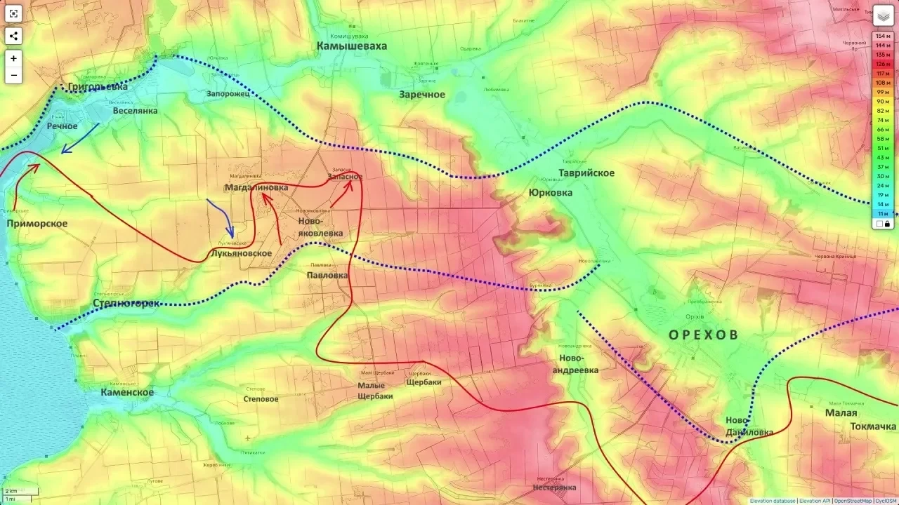 Ключевой точкой напряжения является город Орехов - важнейший оборонительный узел ВСУ, контроль над которым обеспечивает доминирование над транспортными и логистическими маршрутами всего участка.