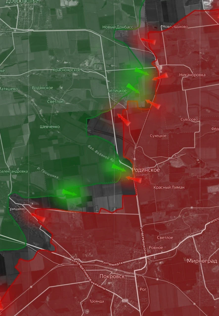 Восточный фронт остается зоной максимального напряжения. На Красноармейском (Покровском) направлении идут кровопролитные бои за населенные пункты Гришино и Белицкое.