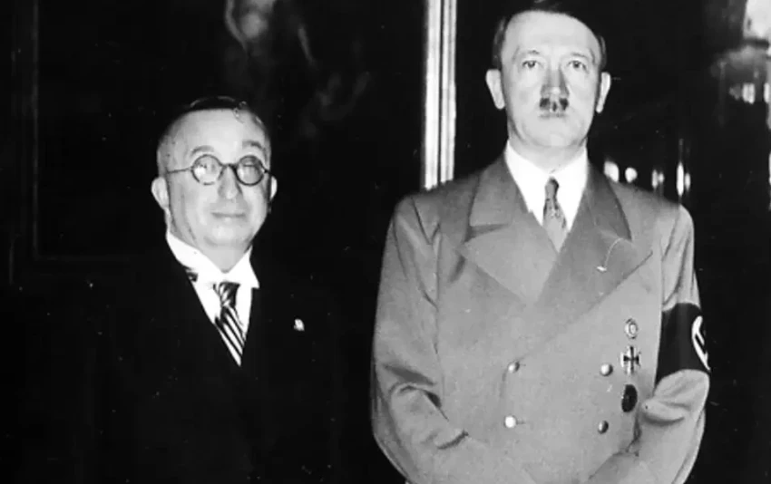 На снимке, датированном 30.01.1939 года, встреча Адольфа Гитлера с ведущими инженерами и промышленниками Третьего рейха, связанными с авиационной и военной промышленностью