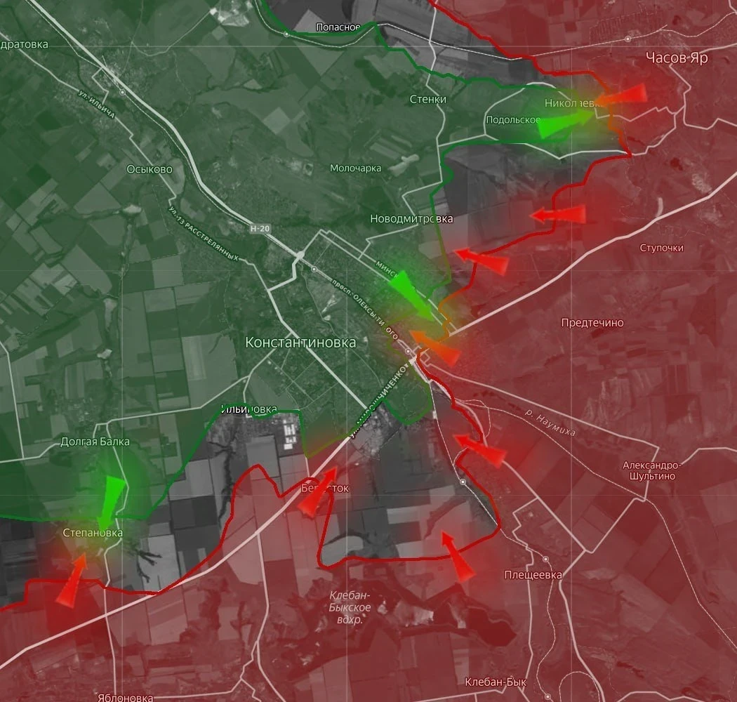 Отмечаются локальные бои в Константиновке, а также на линии Бересток - Ильиновка. Существенных изменений линии фронта нет.