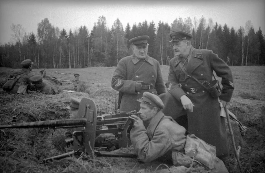 Генерал-лейтенант В. Морозов и генерал-майор А. Игнатьев, 1940 или 1941 г.