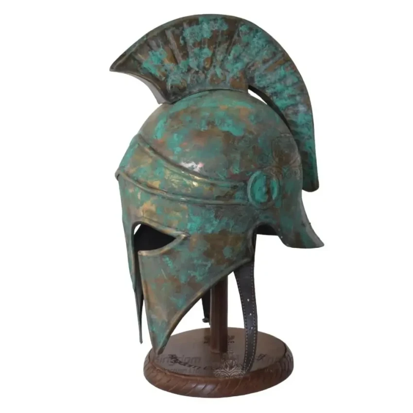 2. Коринфский шлем с металлическим гребнем и подставкой. На вид он выглядит так, словно его грызли, или он ржавел в какой-то канаве. Но может быть так сделано специально? Вот только зачем?