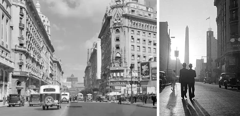В 1930-х и 1940-х годах улицы Буэнос-Айреса, особенно Авенида Корриентес ( Avenida Corrientes), были наполнены энергией «золотого века танго», театрами, кинотеатрами и бурной ночной жизнью. Эта улица была центром развлечений, заслужив, прозвище - «улица, которая никогда не спит», а архитектура города отражала европейское влияние - величественные проспекты и здания чем-то напоминали Париж...