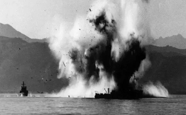В ходе разминирования американцы потеряли пару тральщиков. Первым — головной «Пайрет»: корабль совершил резкий поворот вправо, затем — влево, видимо пытаясь уклониться от мины. После чего последовал взрыв, и тральщик быстро затонул. В это время огонь по тральщику «Пледж», идущему вслед за головным, открыла батарея с острова Синдо. Корабль попытался отвечать, но наехал на мину и также быстро затонул. За следующие две недели было потеряно ещё три тральщика. Но главное — американцы потеряли время!