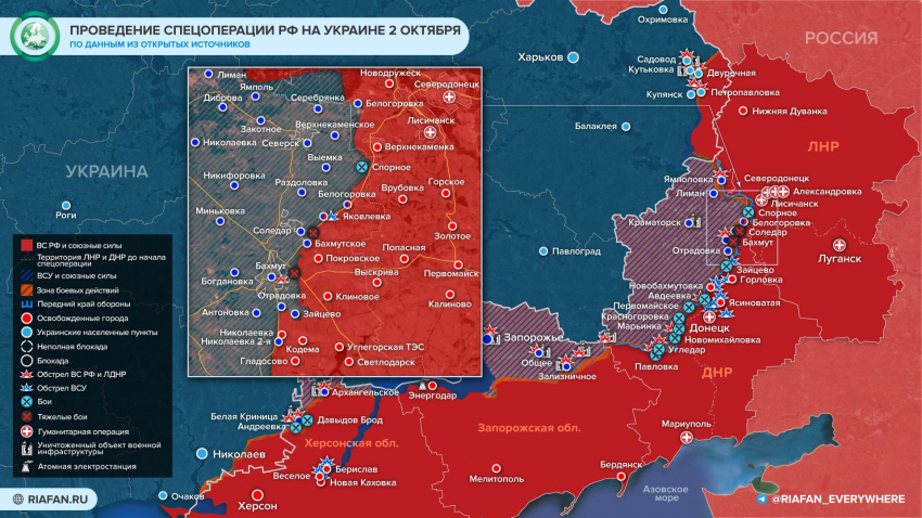 Обновленная новая карта боевых действий в Донбассе по данным на 3 октября — Минобороны обновило новую карту боевых действий 03.10.2022