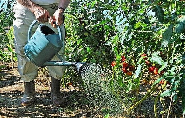 Полив и подкормка помидоров одновременно из поливной ямы
