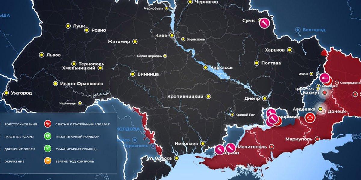 - Карта боевых действий на Украине сегодня, обстановка к утру 19 июня 2023 года от Mash. Бои за Авдеевку