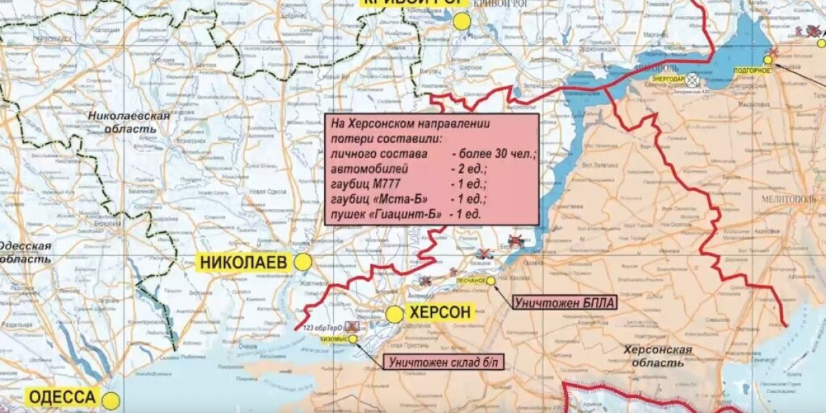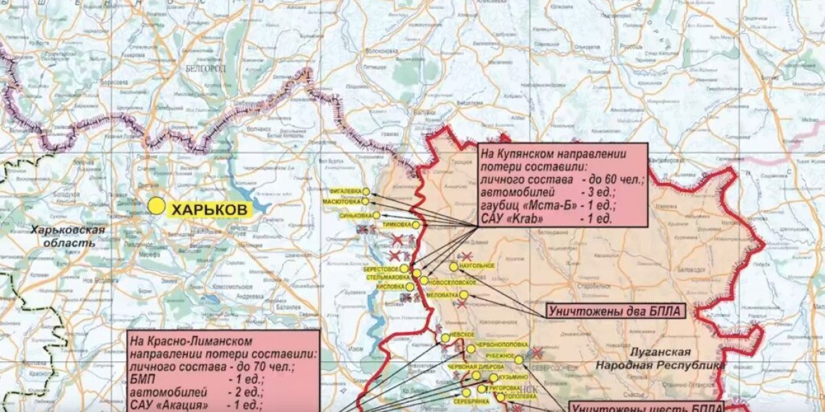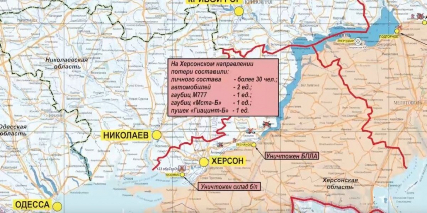 Согласно сводке Минобороны РФ, за последние сутки противник в общей сложности по всем направлениям наступления понес потери в размере порядка 380 бойцов, 35 танков, 33 БМП, в том числе 2 – Bradley, а также 38 бронемашин, включая БТР «Striker» и гаубица Д-20.