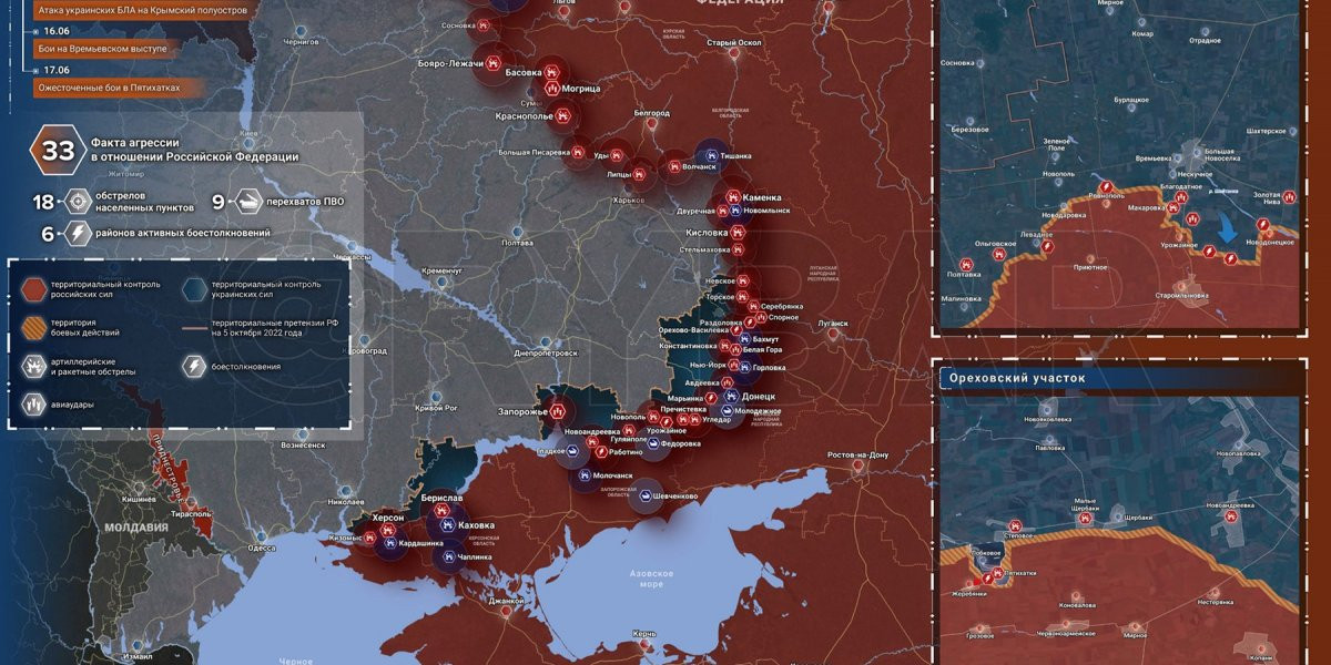 - Карта боевых действий на Украине, к утру 19 июня 2023г., от РИА Новости. Карта специальной военной операции.