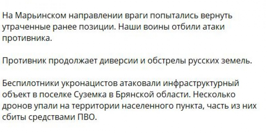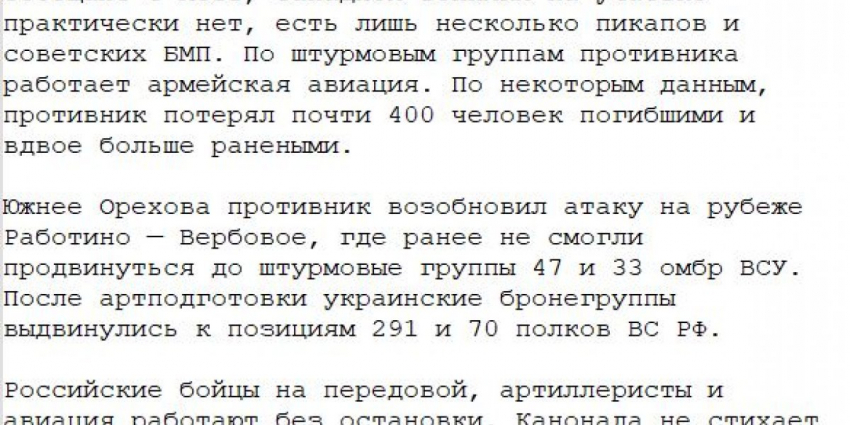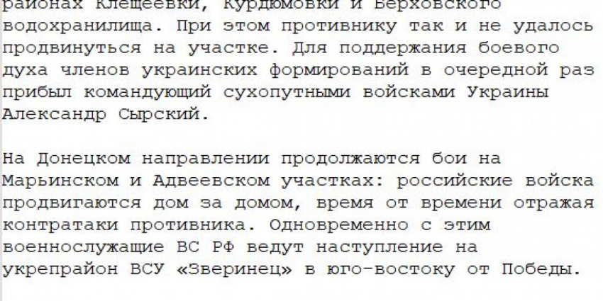 - Актуальная информация на фронтах за ушедшие сутки
