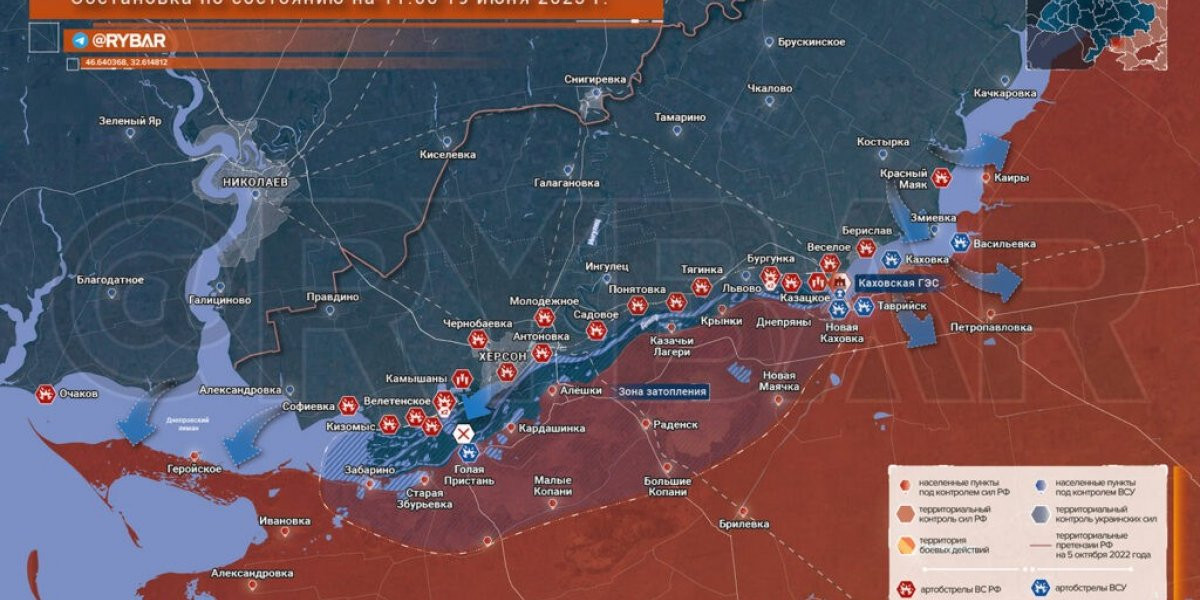 - Карта боевых действий на Украине, Ситуация на херсонском направлении к утру 20 июня 2023 г.: