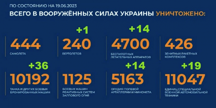- Актуальный брифинг Министерства обороны РФ о ходе проведения специальной военной операции на территории Украины по состоянию на 19 июня 2023 года. Сводка боевых действий на Украине.