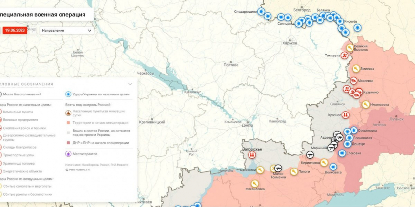 - Карта боевых действий на Украине, к утру 20 июня 2023г., от РИА Новости. Карта специальной военной операции.
