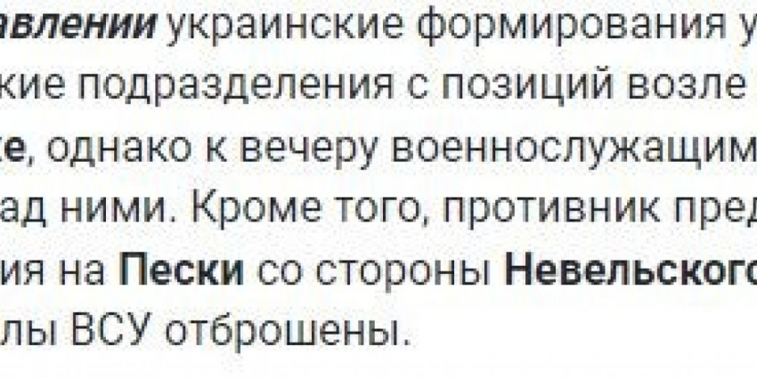 Минобороны отмечает, что в последние сутки наиболее активные боестолкновения происходили именно здесь. При содействии авиации отражены три атаки Вооруженных сил Украины (ВСУ).