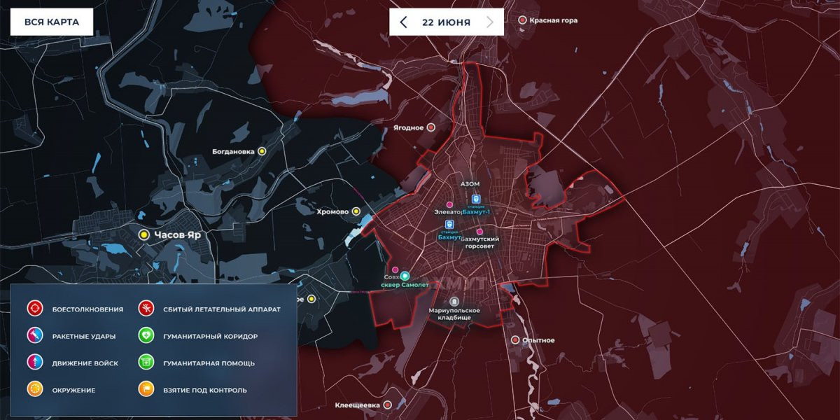 12. Карта боевых действий на Украине сегодня, обстановка 22 июня 2023 года от Mash. Бои на Артёмовском направлении