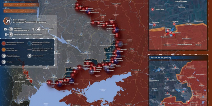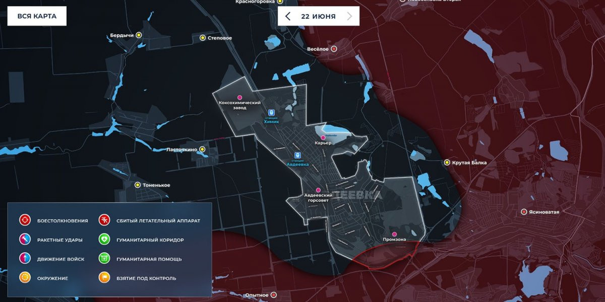 13. Карта боевых действий на Украине сегодня, обстановка 22 июня 2023 года от Mash. Бои за Авдеевку