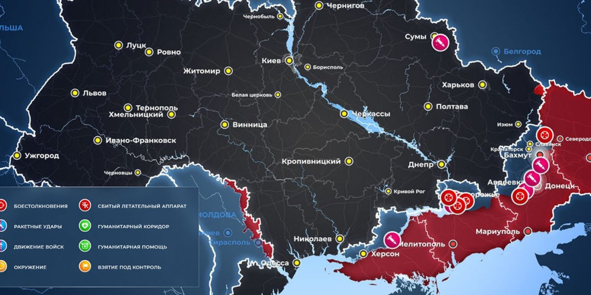 14. Карта боевых действий на Украине сегодня, Общая обстановка 22 июня 2023 года от Mash