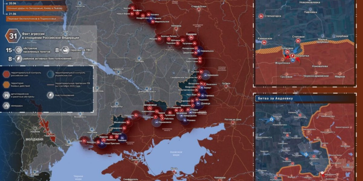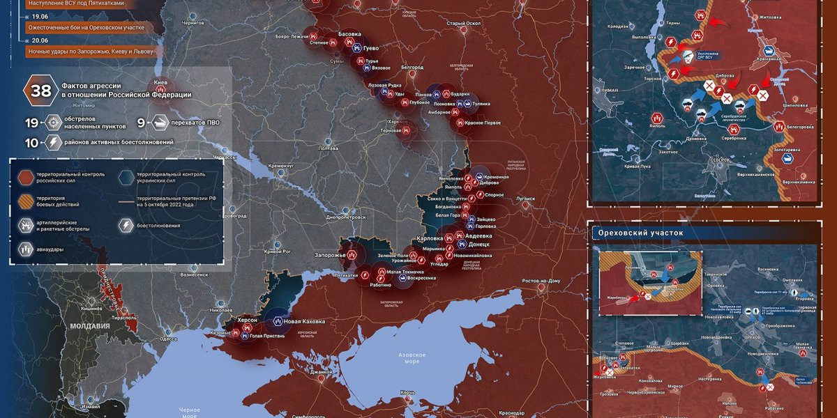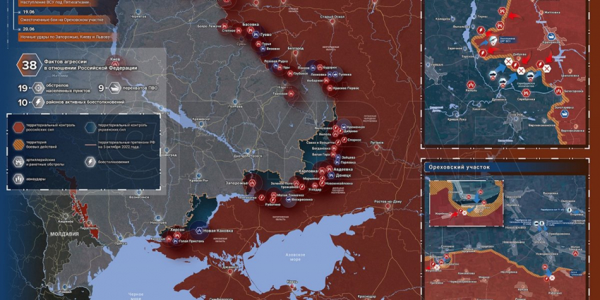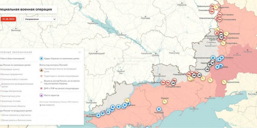 21. Карта боевых действий на Украине, 22 июня 2023г., от РИА Новости. Карта специальной военной операции.