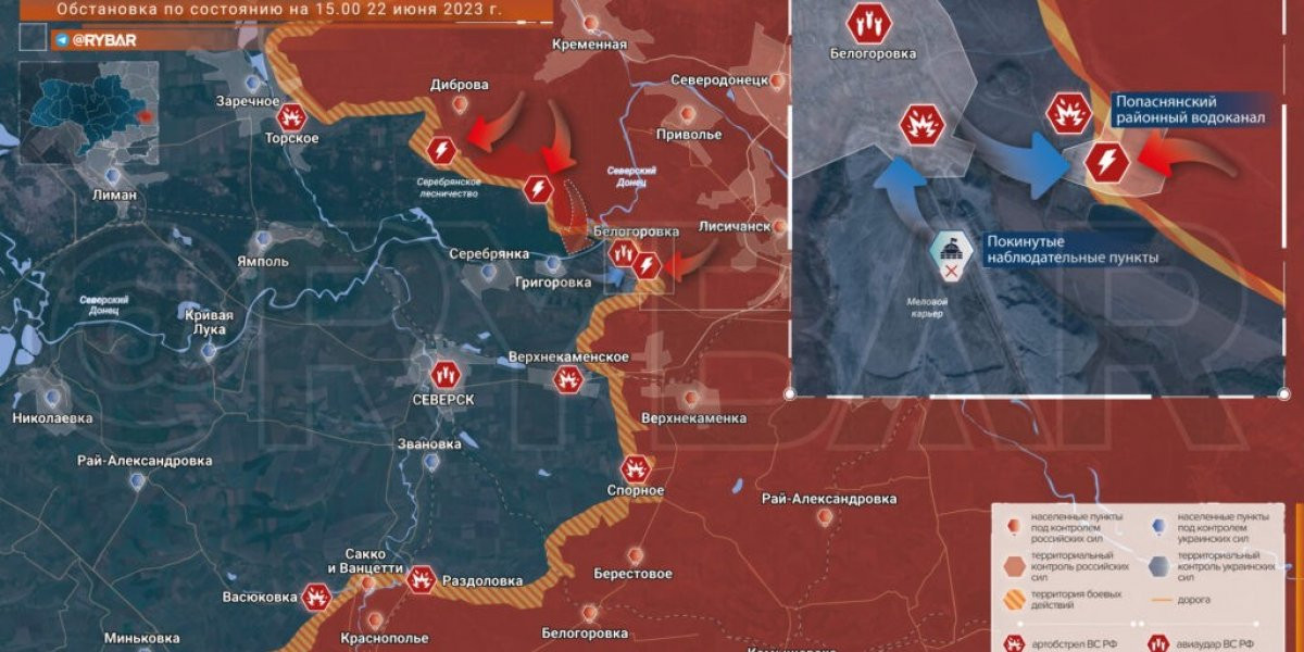 24. Карта боевых действий на Украине, фронтовая сводка на северском направлении фронта СВО на 22 июня 2023г.: