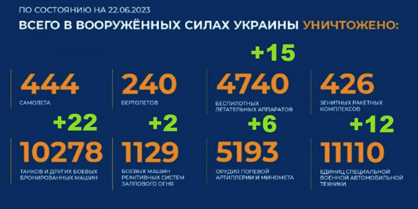 26. Спецоперация России на Украине, 22 июня 2023г. : Развитие событий, комментарии военкоров и заявления первых лиц, экономика и международная реакция.