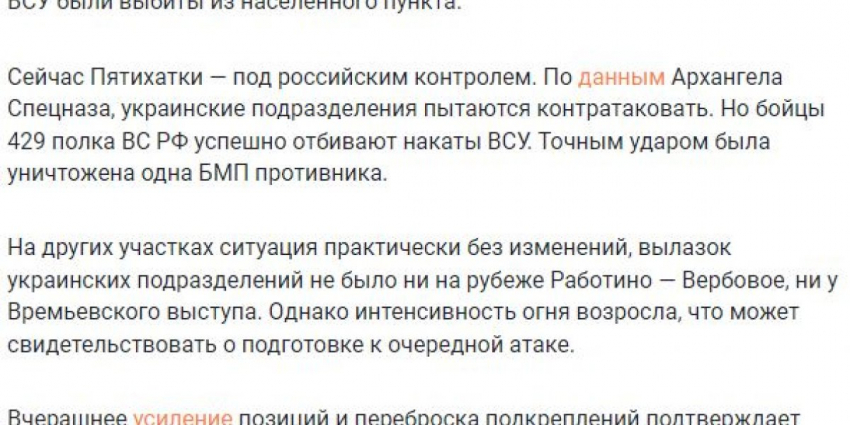 Собеседник издания подчеркнул, что недавние события на Запорожском направлении говорят о сохраняющемся потенциале российских войск. В частности, Константин Сивков вспомнил об успешном отражении всех атак противника на Времевском выступе.