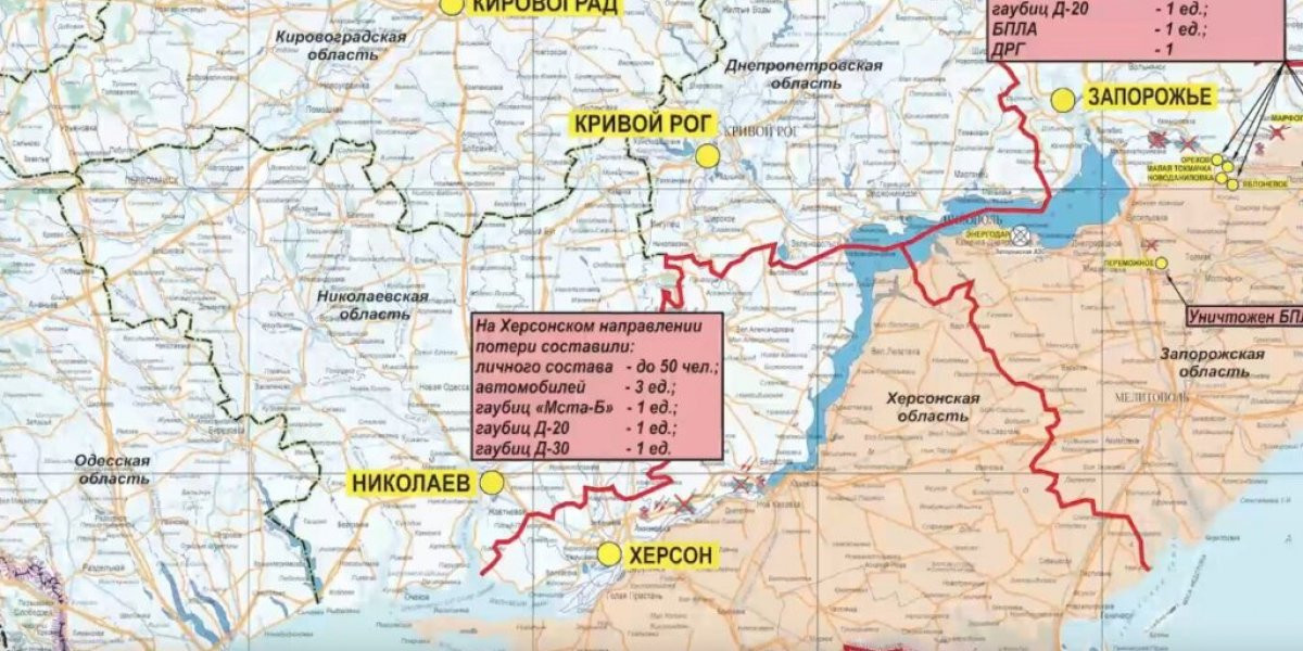 Украинские диверсанты планировали высадиться на острове Антоновский, говорится в сообщении, но их действия пресекли российские солдаты. Потери противника составили полсотни бойцов. Уничтожены несколько гаубиц и автомобилей.