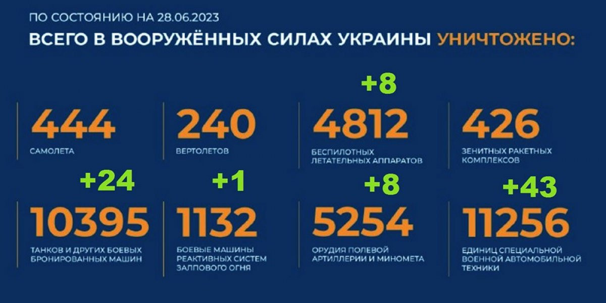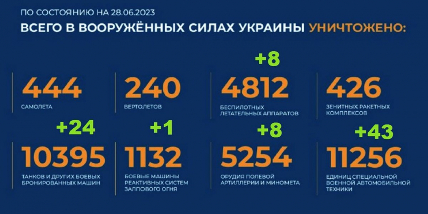 - Потери Украины на сегодня 28.06.2023 г. Брифинг Минобороны РФ: