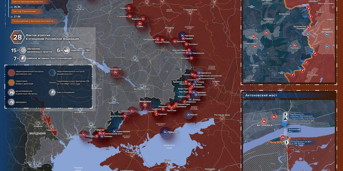 - Карта боевых действий на Украине сегодня, Общая обстановка к утру 29 июня 2023 года от Mash