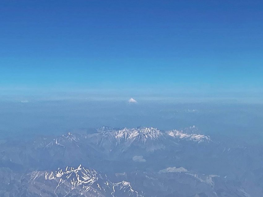 Совершенно неожиданно незадолго до посадки увидел в иллюминатор доминирующую заснеженную вершину — у меня даже тени сомнения не возникло, что это именно Демавенд. А ещё перед посадкой несколько раз нас потрясла турбулентность. Удивительно, что это происходило это при отличной видимости и отсутствии каких-либо признаков нестабильной погоды.