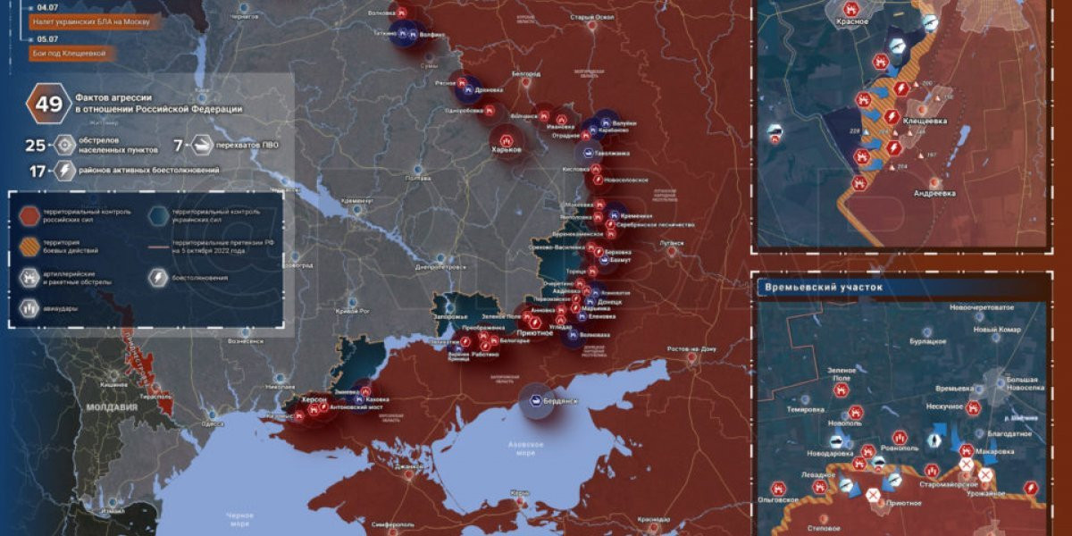 Карта боевых действий на Украине сегодня 06.07.2023 в реальном времени на сейчас