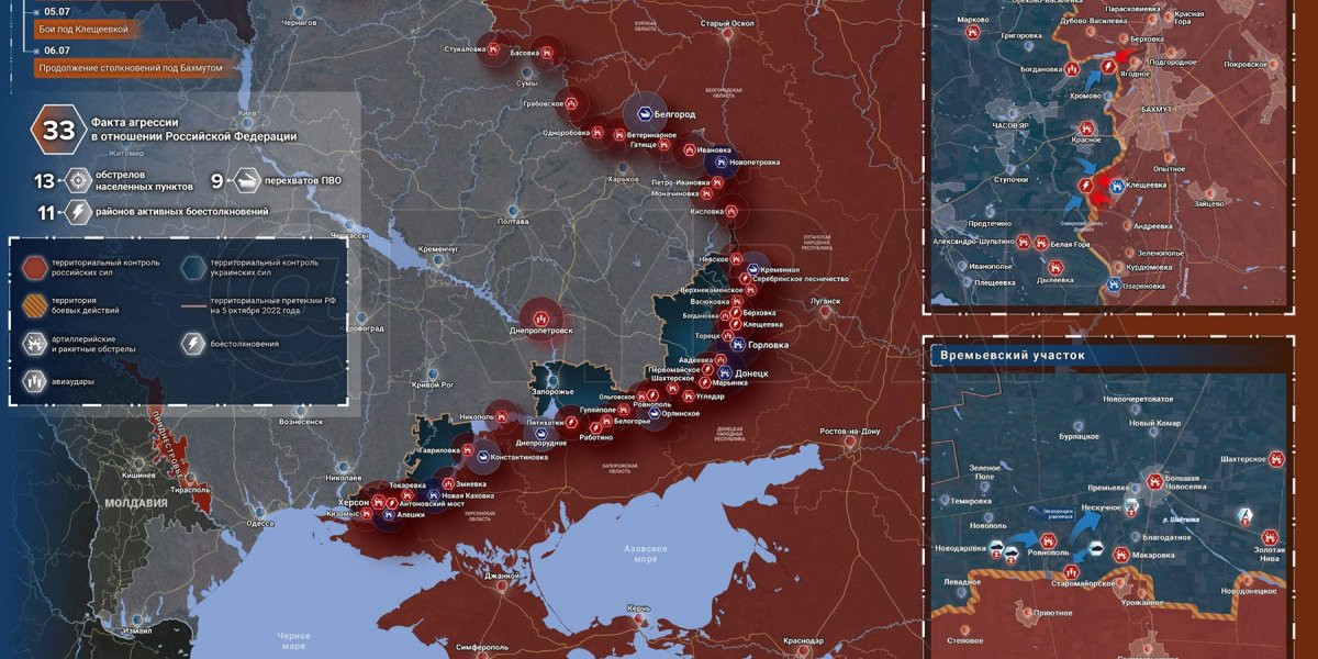 - Карта боевых действий на Украине сегодня, Общая обстановка к утру 8 июля 2023 года от Mash