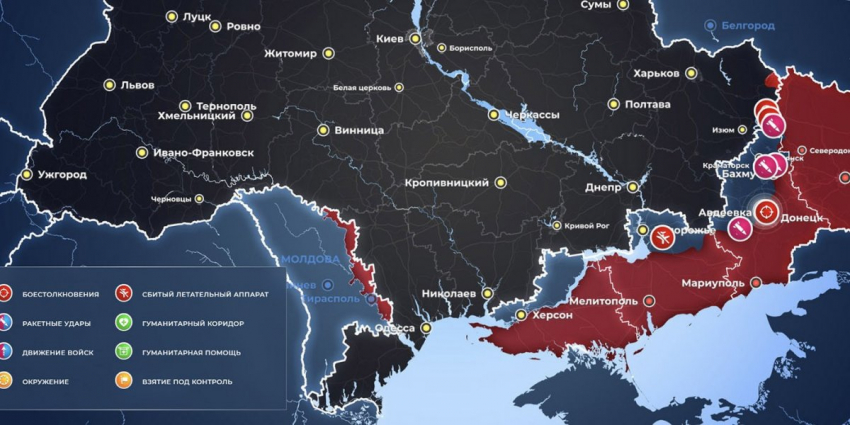 - Карта боевых действий на Украине сегодня, обстановка к утру 8 июля 2023 года от Mash. Бои за Авдеевку