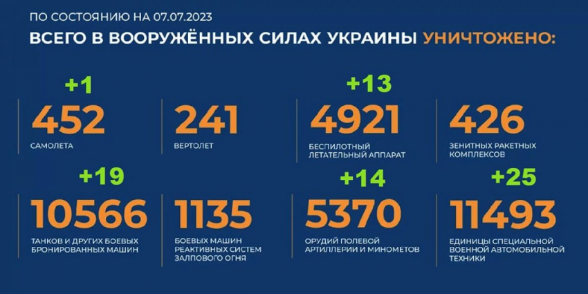 - Актуальный брифинг Министерства обороны РФ о ходе проведения специальной военной операции на территории Украины по состоянию на 7 июля 2023 года. Сводка боевых действий на Украине.