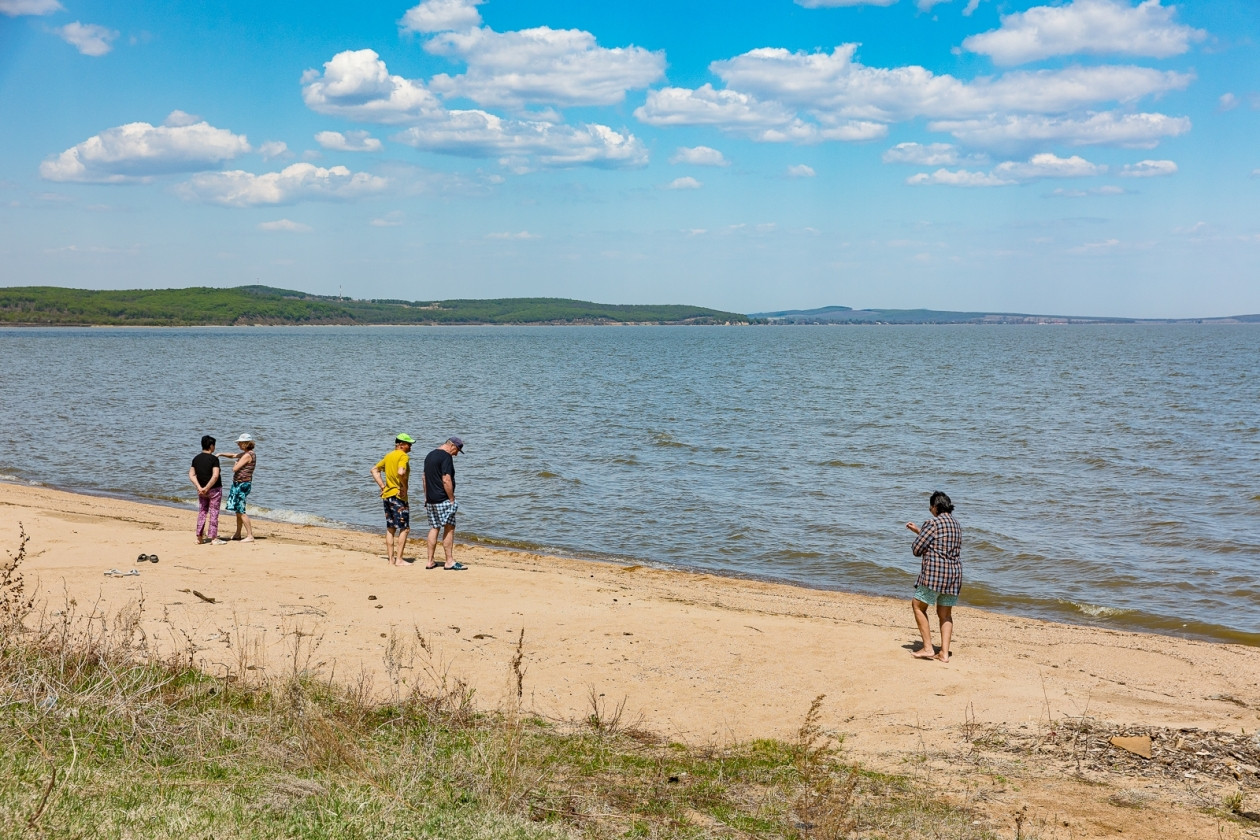 Озеро довольно внушительное, поэтому его окружают самые разные пляжи как широкие благоустроенные, с десятками кафе, туалетов и раздевалок, так и узкие “дикие”, как возле села Платоно-Александровское, которое посетил наш фотокорр.