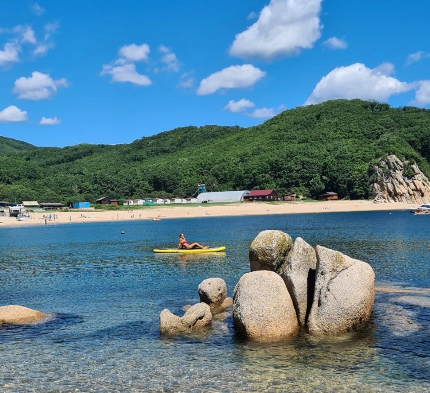 Прекрасное место, окружённое зелёными утёсами, расположилось в 3 часах езды на машине от Владивостока. Кристально чистая вода, которая прогревается к середине августа, белый песок — небольшую бухту в народе прозвали “приморским Тайландом”. Справа в бухте плавный заход в море и длинное расстояние, где не глубоко — можно с детьми.
