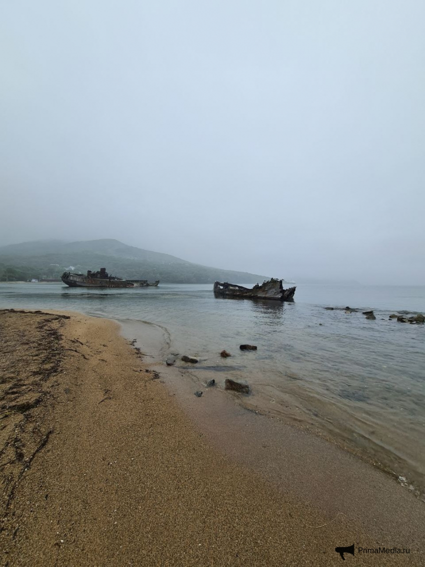 Берег в бухте Витязь на том же полуострове Гамова славится загадочным кладбищем затонувших кораблей. Рыбацкая шхуна “Лысьва”, 60-ти метровый “Лахтак”, судно “Кварц”, пароход “Владимир” превратились в приют для местных морских обитателей, а также в музей для ныряльщиков с масками. И действительно, мрачные проржавевшие судна, окружённые туманом, так и манят любителей истории и авантюр.
