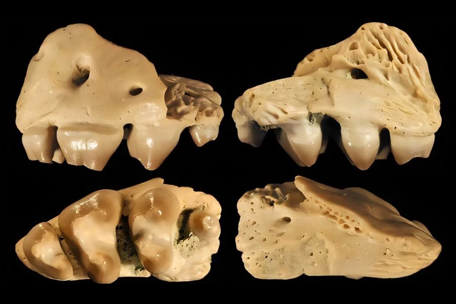 «Эти образцы имели много необычных характеристик», — говорит Джонс. «Например, передняя часть челюсти не сращена, и нет очевидного места, где они могли бы соединяться. Вместо этого мы думаем, что две половины челюсти, вероятно, были соединены связками. Если бы это было так, то челюсть была бы в некоторой степени гибкой. Это могло бы способствовать контакту зубов во время жевания и обеспечивать некоторый потенциал амортизации, предотвращая передачу сил между двумя сторонами челюсти».