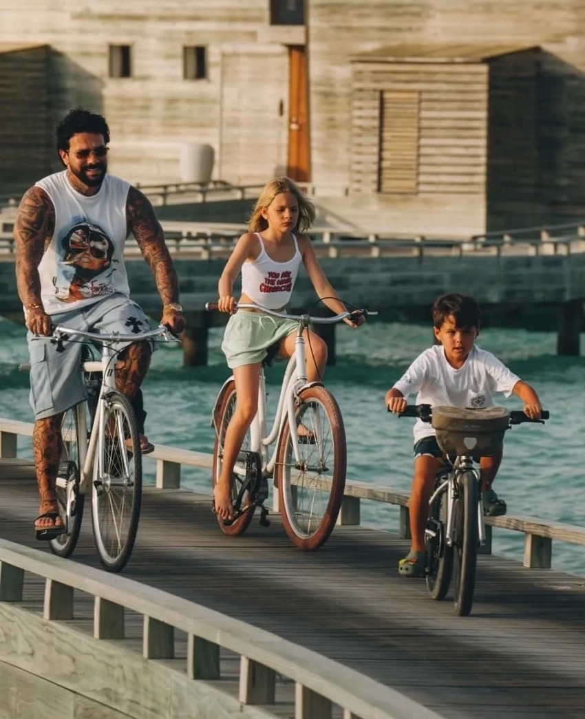В своих соцсетях рэпер поделился фотографиями, сделанными во время путешествия. На снимках он катается с детьми на велосипеде, бегает с ними по пляжу и веселится у бассейна. Симона тоже опубликовала пару снимков в своем инстаграме*, предложив подписчикам определить ее “рабочую сторону”.